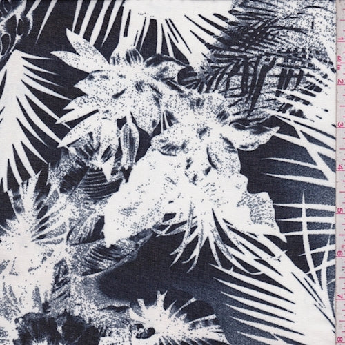 3 1/2 YD PC-Navy/White Tropical Crepe Chiffon Fabric