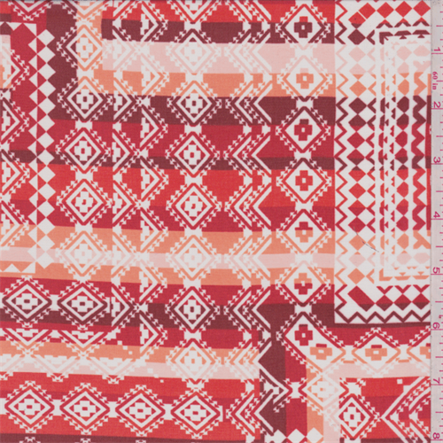 3 1/2 YD PC-Red/Pink/White Aztec Print Hi Multi Chiffon Fabric