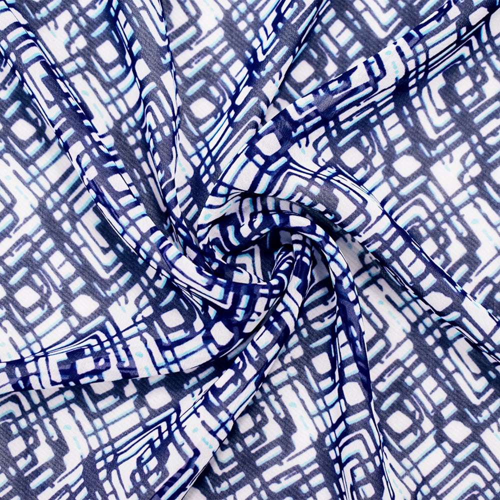 3 3/4 YD PC-Deep Blue-Purple-Teal Poly Abstract Printed Chiffon Woven Fabric