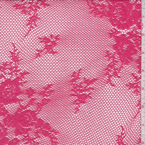 4 3/8 YD PC-Raspberry Pink Floral Mesh Lace Fabric