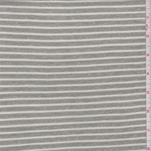 Lightweight rayon blend sweater knit fabric with a yarn dyed horizontal stripe. Soft feel with a nice drape and slight mechanical stretch in the width. Suitable for knit tops and summer sweaters. Machine washable.
