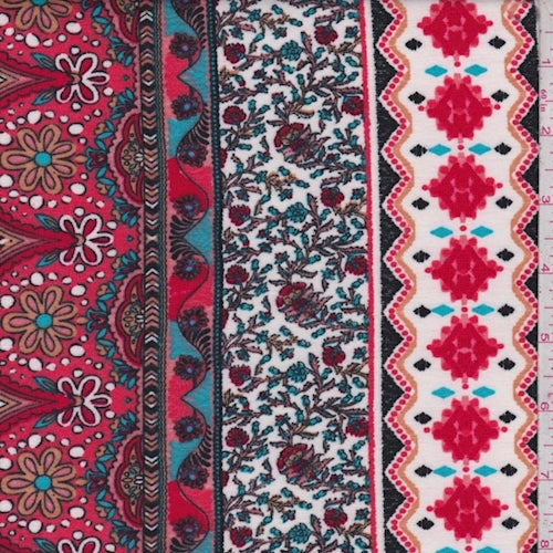 4 7/8 YD PC-Coral/White/Red Stylized Stripe Jersey Knit Fabric