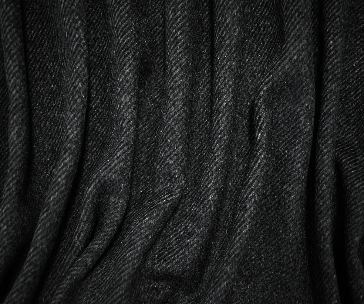 3 1/2 YD PC - Black-Gray Wool Rayon Slub Double Brushed Twill Woven Jacketing Fabric