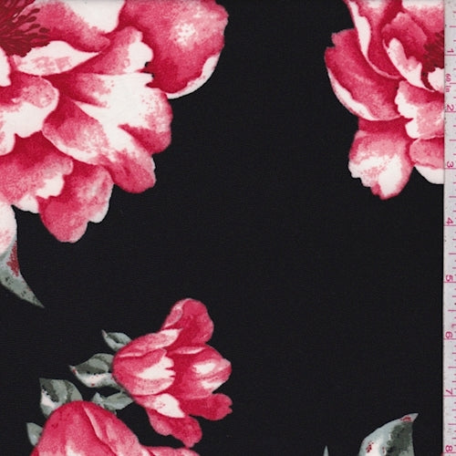2 YD PC-Black/Pale Red Peony Scuba Knit Fabric