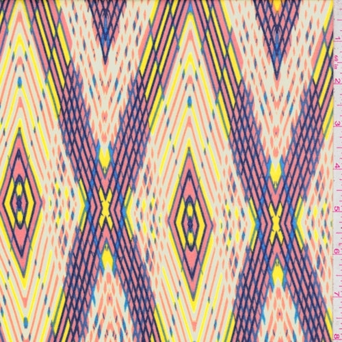 3 3/4 YD PC-Clay Pink/Yellow Diamond Rayon Challis Fabric