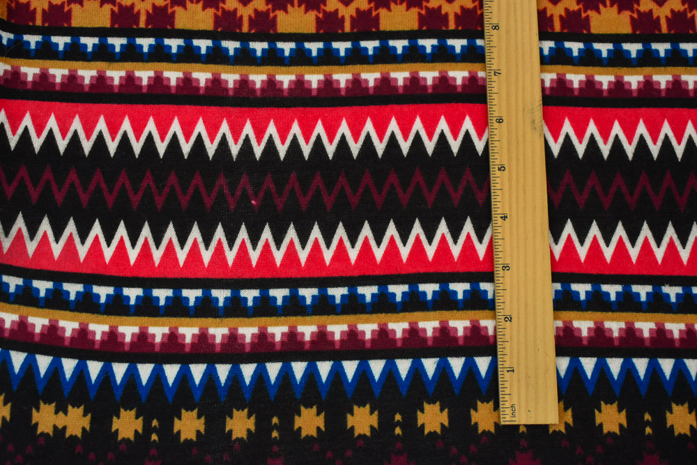 3 YD PC-Red-Brown-Multi Poly Stretch Spandex Aztec Printed Brushed Face Double Knit