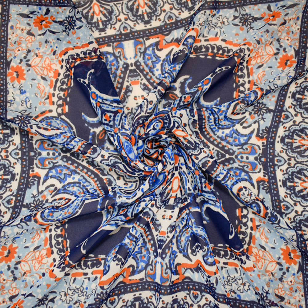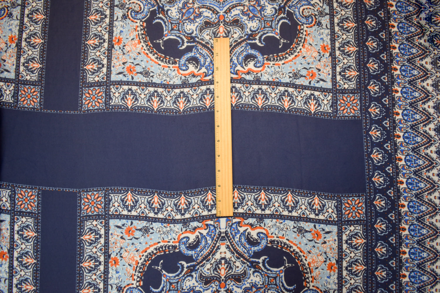 4 YD PC-Blue-White-Orange Poly Moroccan Bandana PANEL Printed Chiffon Woven Fabric