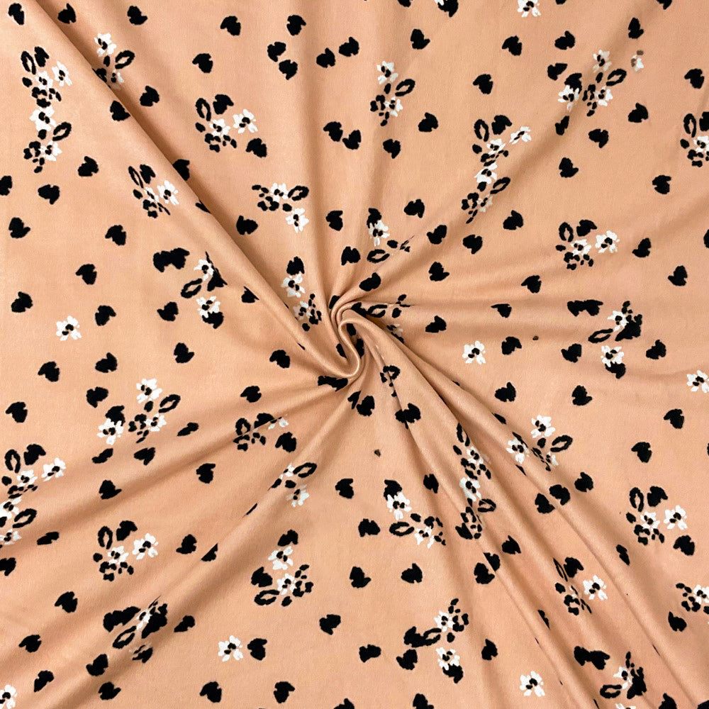 -Beige-Multi Poly Spandex Stretch Abstract Floral Print Double Brush Jersey Knit Fabric