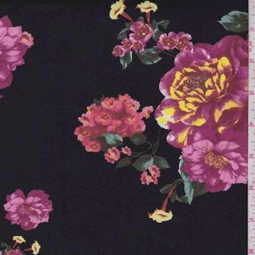 Black Floral Sprig Double Brushed Jersey Knit Fabric