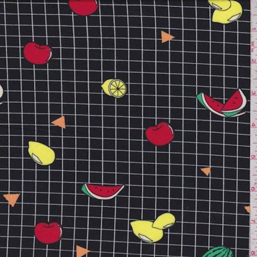 Black Grid/Fruit Double Brushed Jersey Knit Fabric
