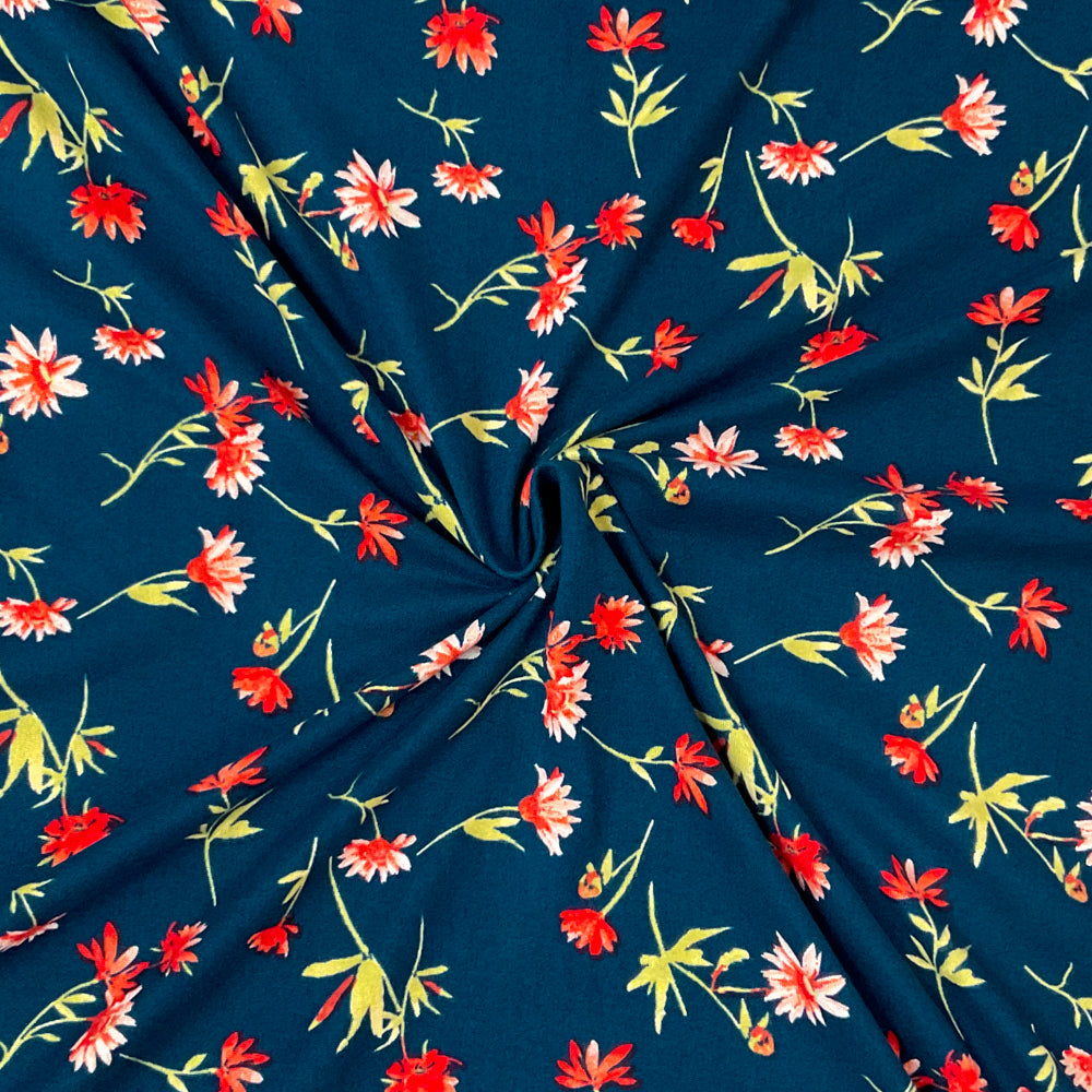 Blue-Multi Poly Spandex Stretch Floral Print DB Jersey Knit Fabric