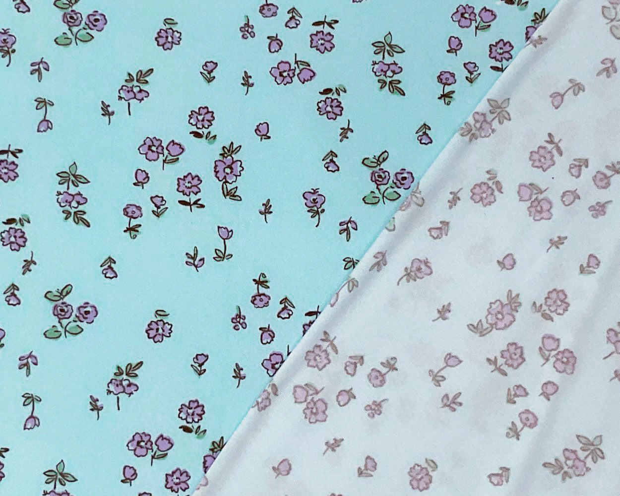 Blue-Multi Poly Stretch Spandex Floral Print DB Jersey Knit Fabric