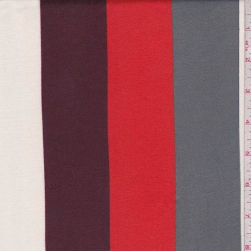 Burgundy/Red/Slate Stripe Double Brushed Jersey Knit Fabric