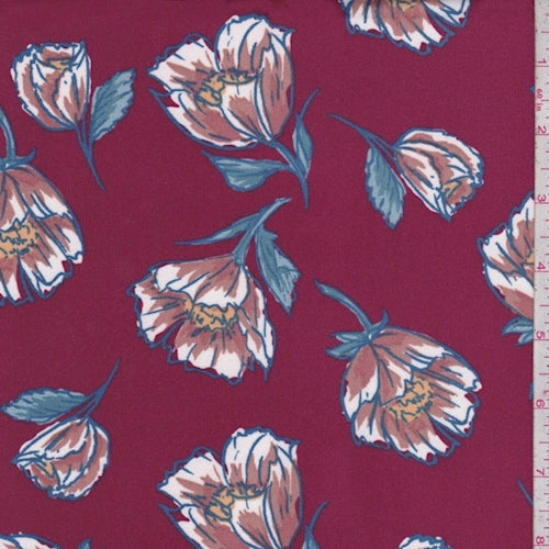 Cranberry/Copper Fringe Floral Double Brushed Jersey Knit Fabric