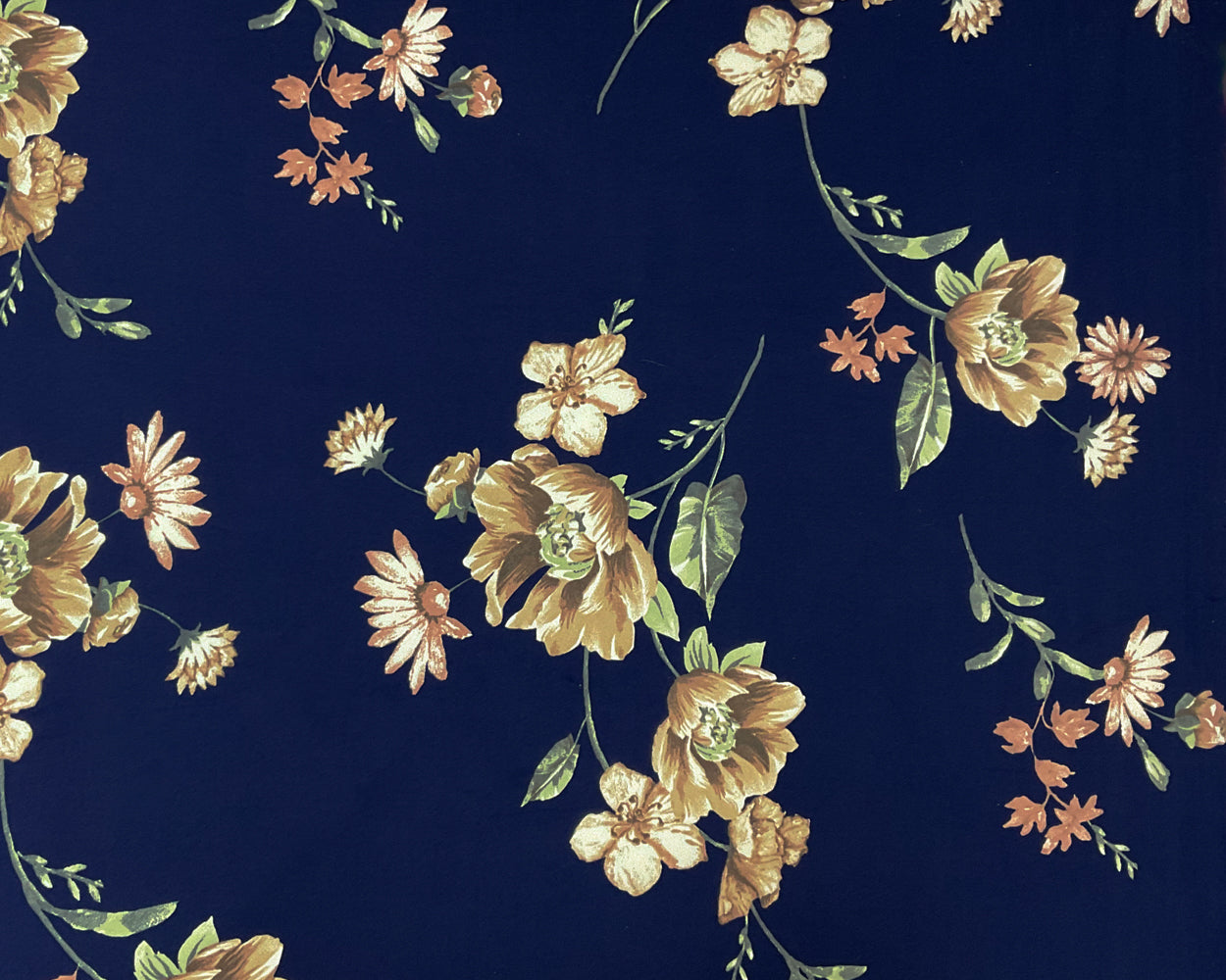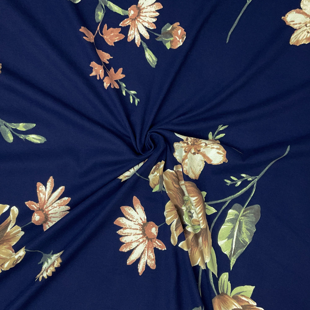 Deep Blue-Multi Poly Spandex Stretch Floral Print DB Jersey Knit Fabric