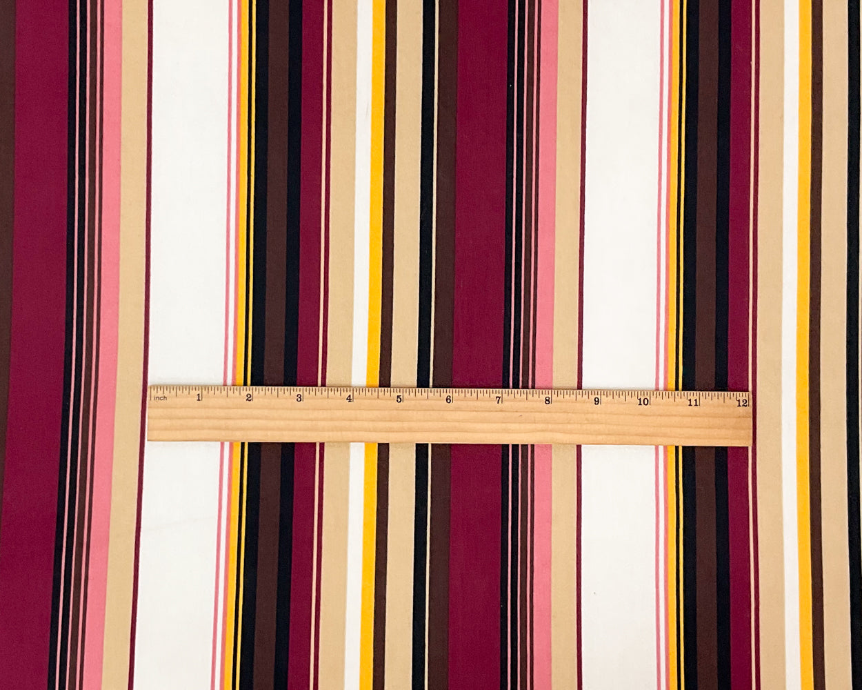 Deep Maroon-Multi Poly Stretch Spandex Vertical Stripe Print DB Jersey Knit Fabric