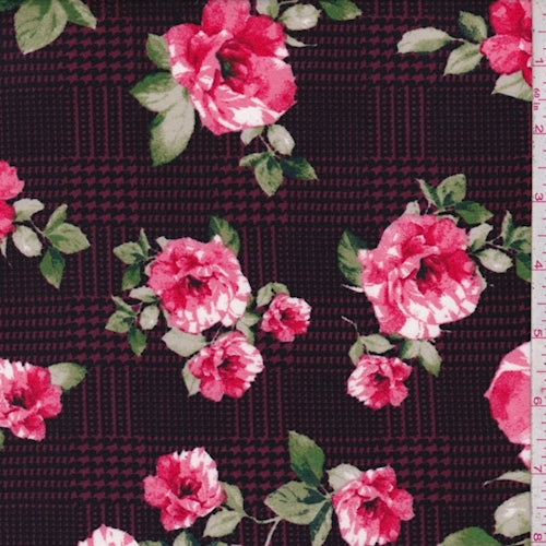 Magenta/Pink Glen Plaid Floral Double Brushed Jersey Knit Fabric