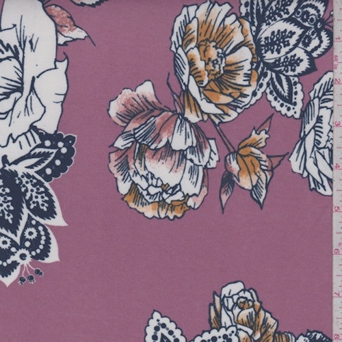 Mauve/Navy Stylized Floral Double Brushed Jersey Knit Fabric