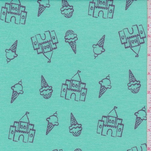 Mint Blue Ice Cream Castle Brushed French Terry Knit Fabric