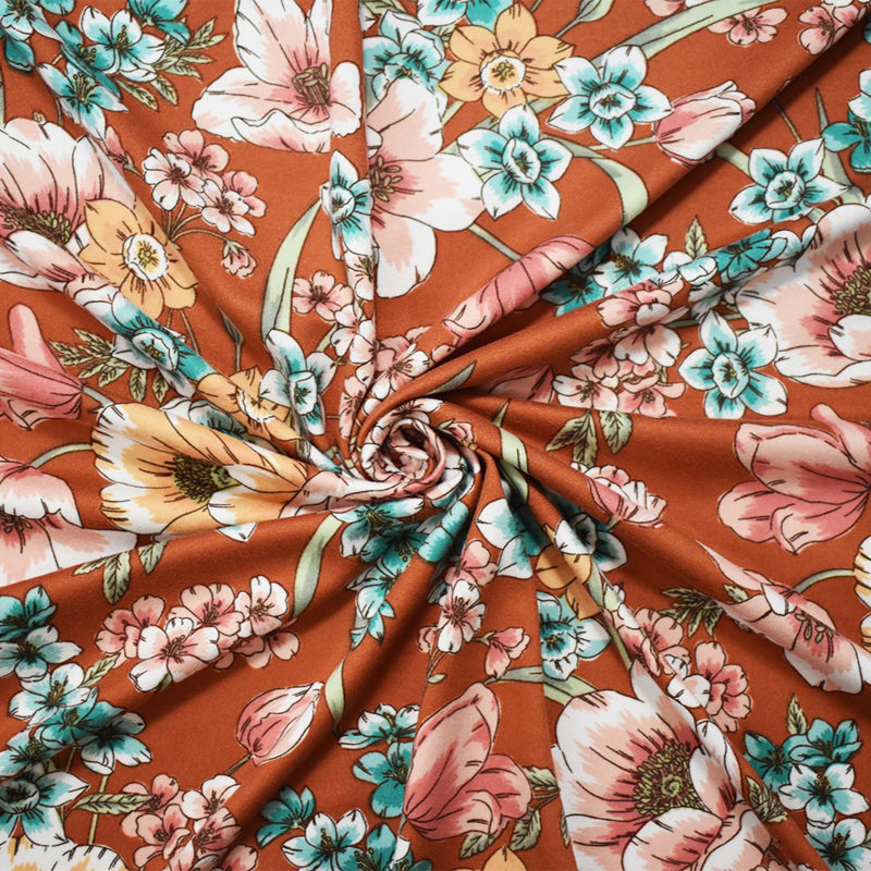 Orange-Multi Poly Stretch Floral Print DB Jersey Knit Fabric