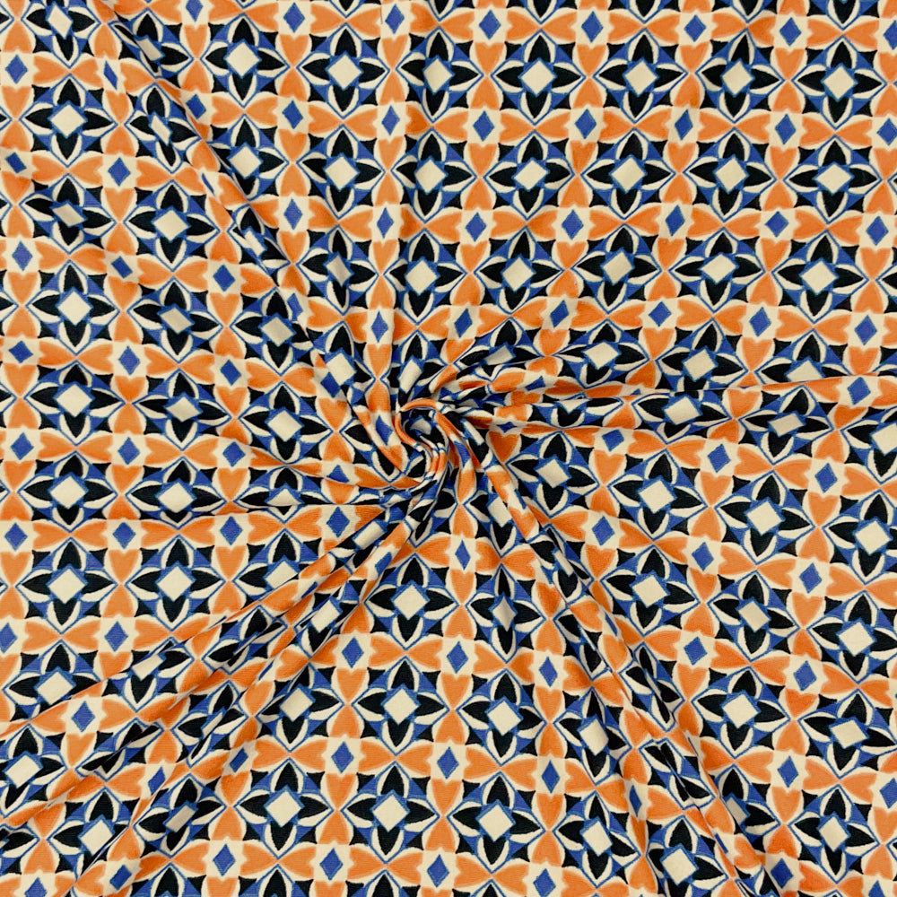 Orange-Multi Poly Stretch Spandex Floral Tile Print DB Jersey Knit Fabric