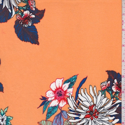 Pale Orange/White Multi Fringe Floral Cluster Double Brushed Jersey Knit Fabric