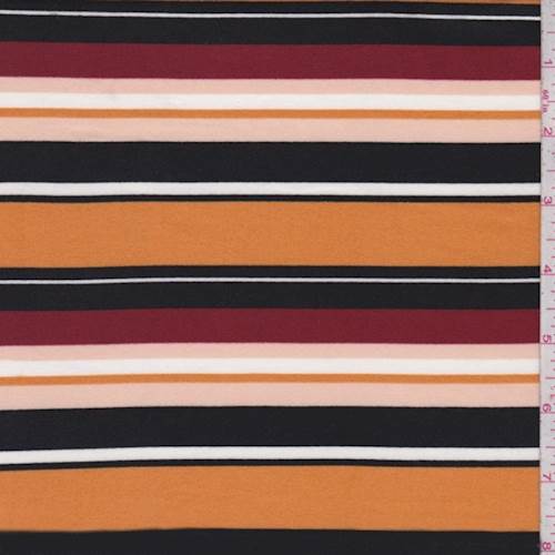 Pumpkin/Black/Burgundy Stripe Double Brushed Jersey Knit Fabric