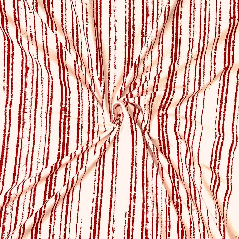 Red-Light Pink Poly Stretch Spandex Vertical Stripe Print DB Jersey Knit Fabric
