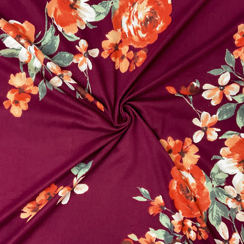 Red-Multi Poly Spandex Stretch Floral Print DB Jersey Knit Fabric