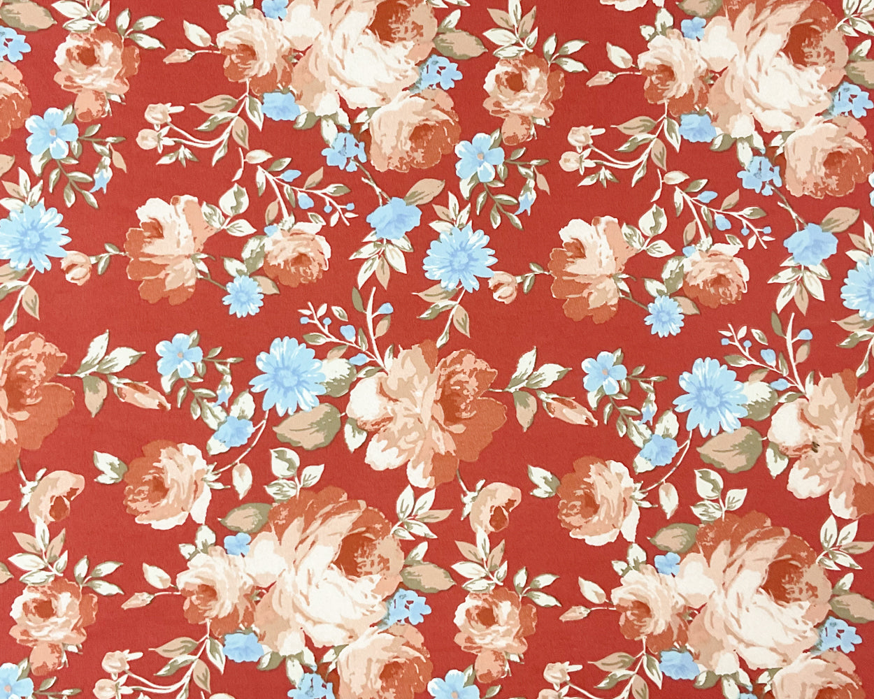 Red-Multi Poly Stretch Spandex Floral Print DB Jersey Knit Fabric