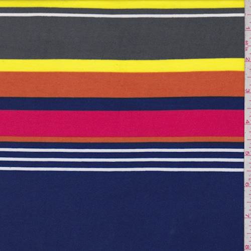 Slate/Yellow/Violet Stripe Double Brushed Jersey Knit Fabric