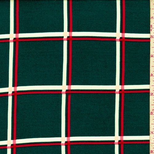 Spruce/Pink/White Check Double Brushed Jersey Knit Fabric