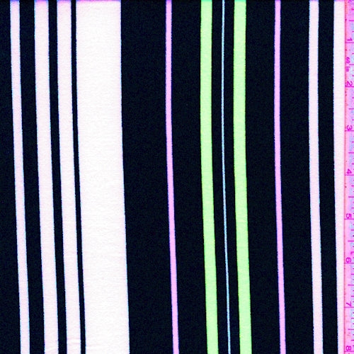 White/Black/Neon Green Stripe Double Brushed Jersey Knit Fabric