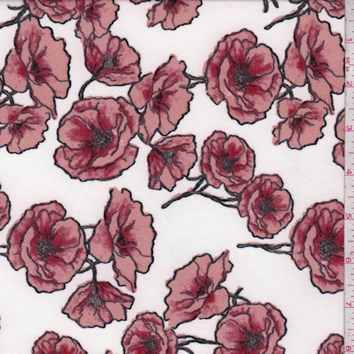 White/Clay Floral Double Brushed Jersey Knit Fabric