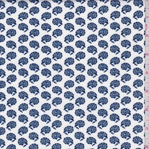 White/Navy Mini Paisley Double Brushed Jersey Knit Fabric