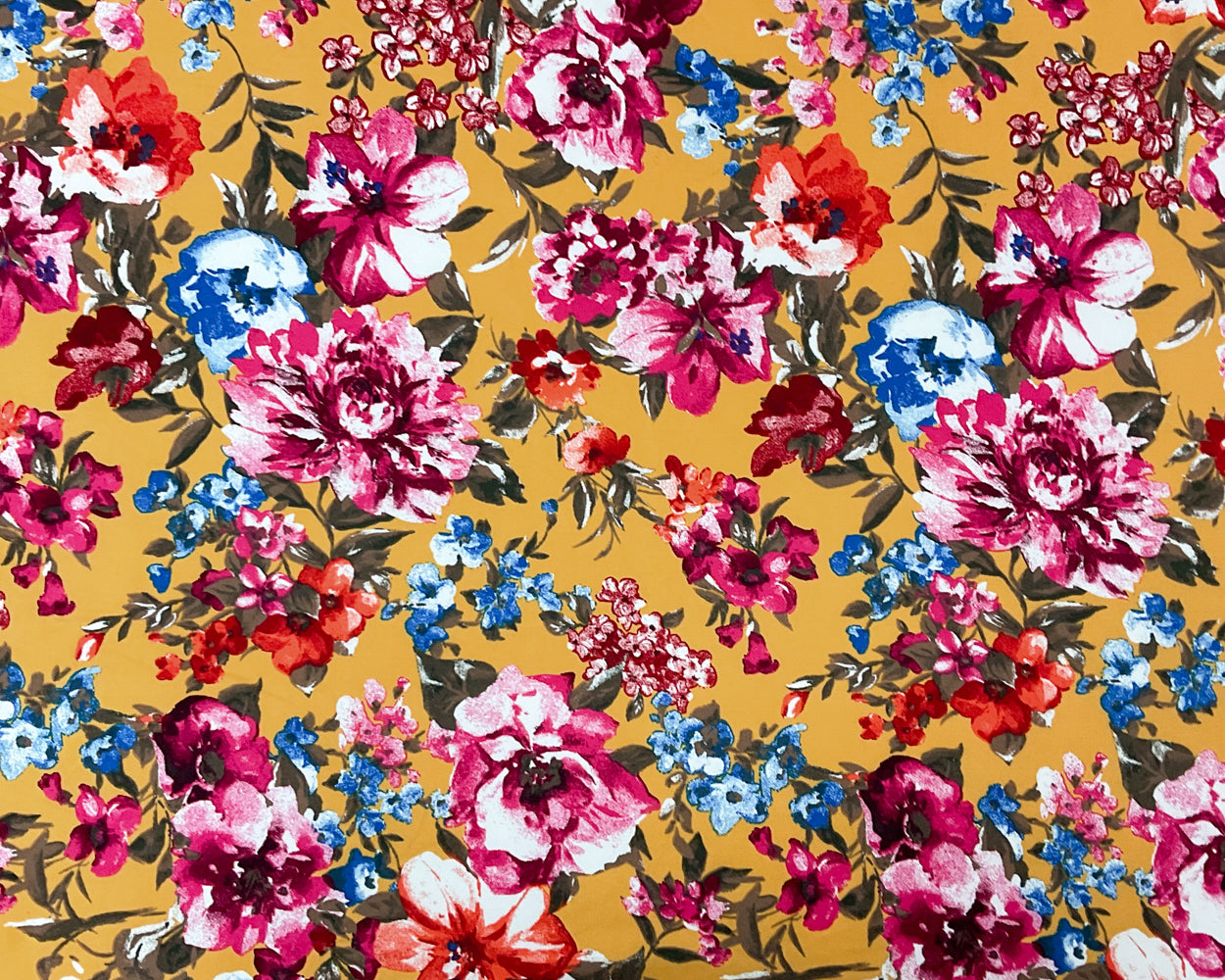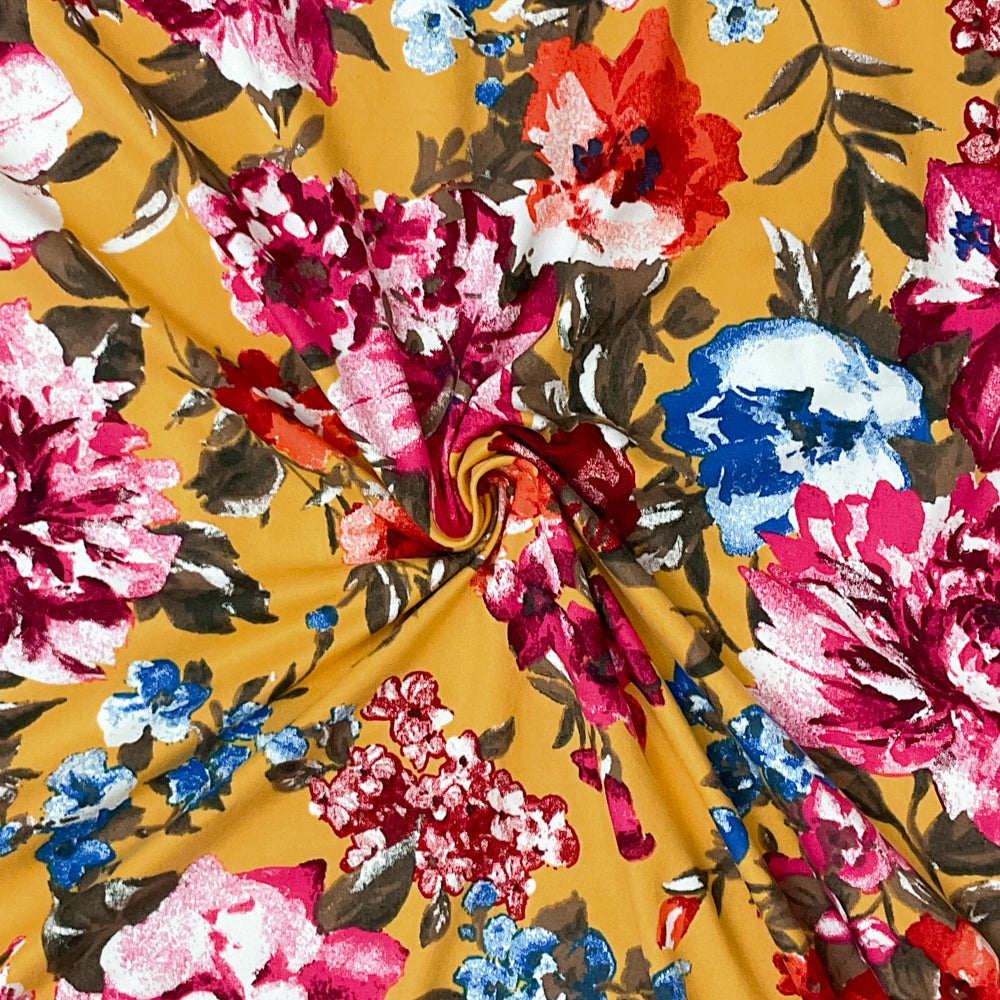Yellow-Multi Poly Stretch Spandex Floral Print DB Jersey Knit Fabric