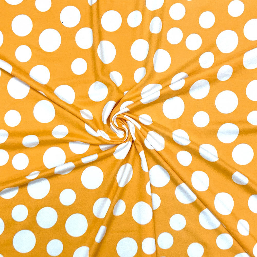 Yellow-White Poly Spandex Stretch Dot Print DB Jersey Knit Fabric