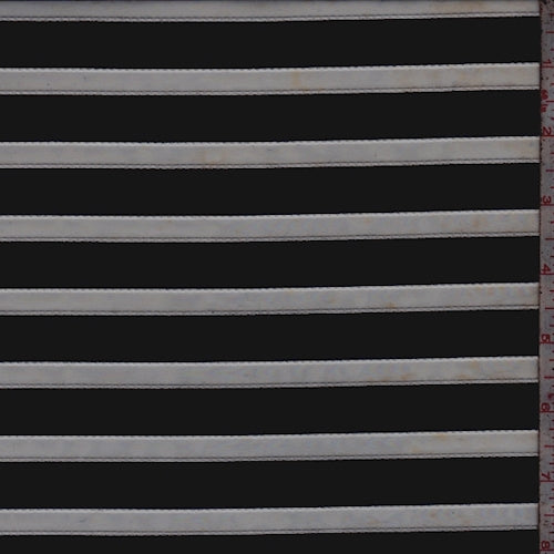 Dark Navy/Pearl Organza Stripe Twill Fabric