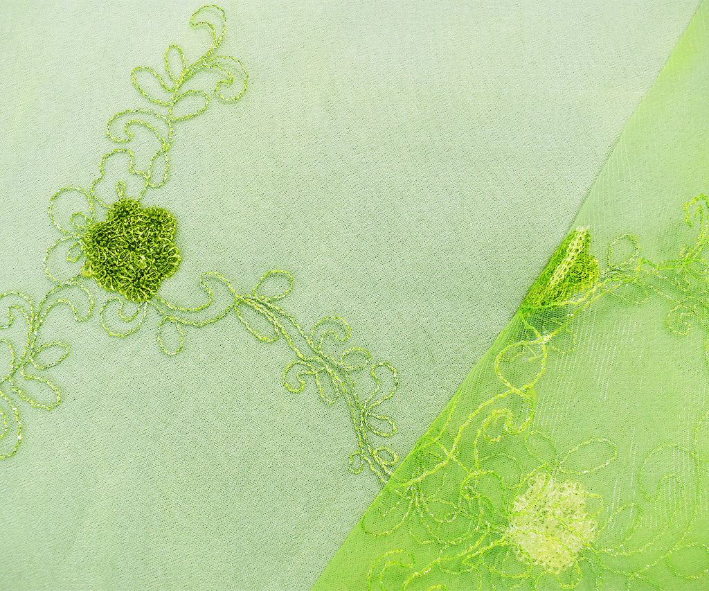 -Green-Silver-Ivory Nylon Metallic Floral Embroidery Scallop Mesh Tulle Fabric