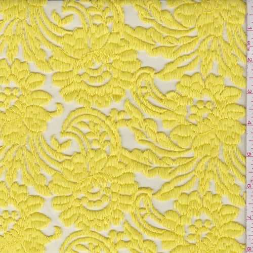 Lemon Yellow Embroidered Stylized Floral Tulle Fabric