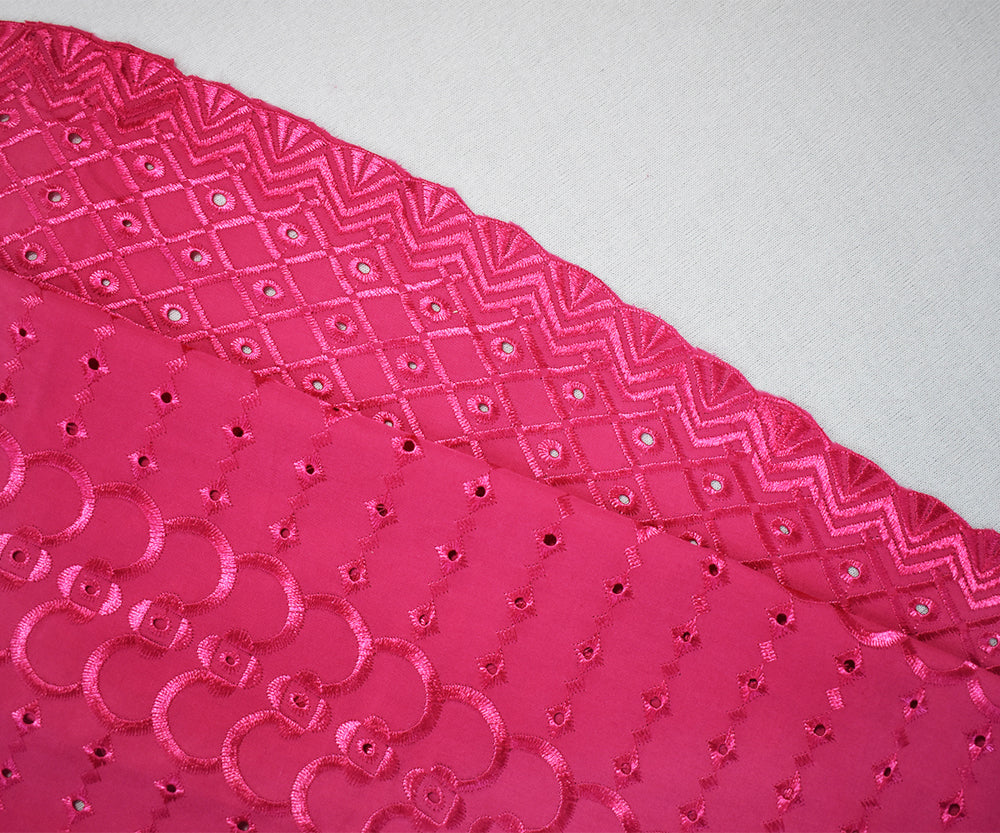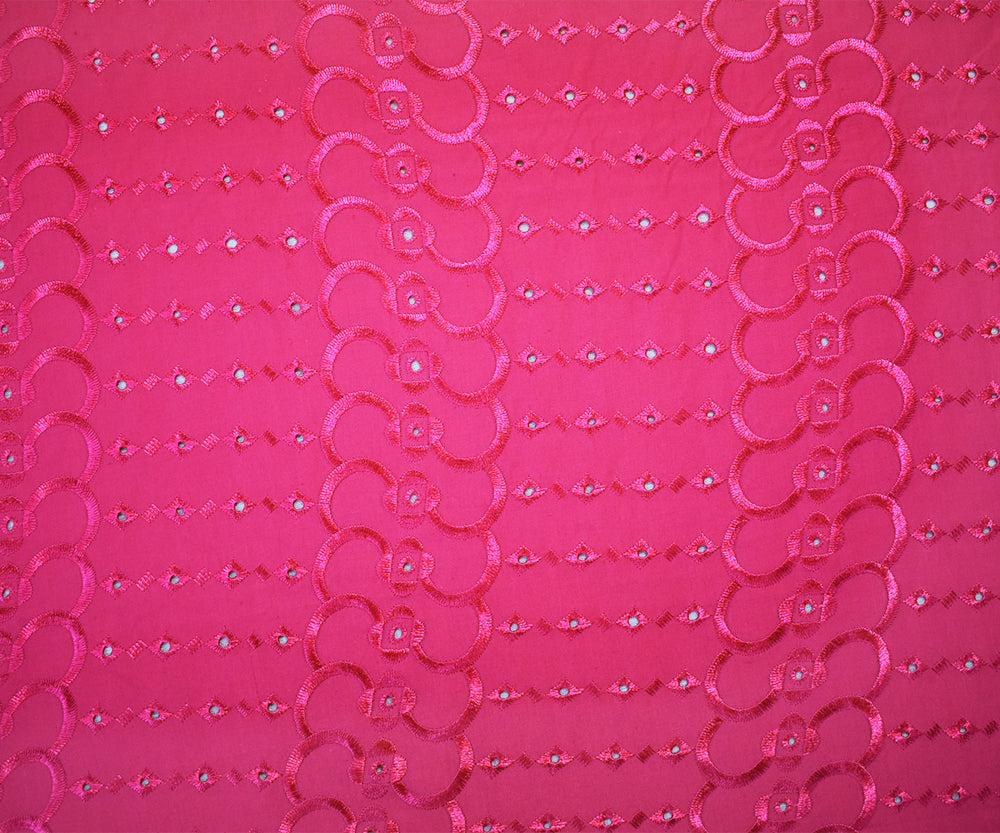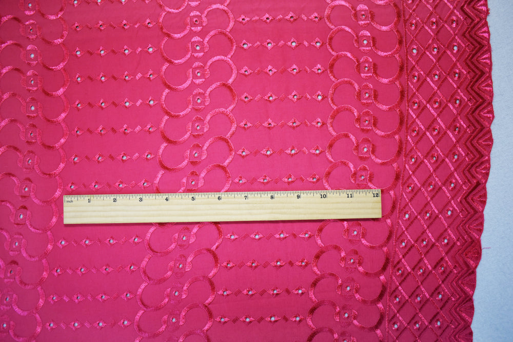 Pink Poly-Cotton Embroidered Abstract Eyelet Scallop Woven Fabric