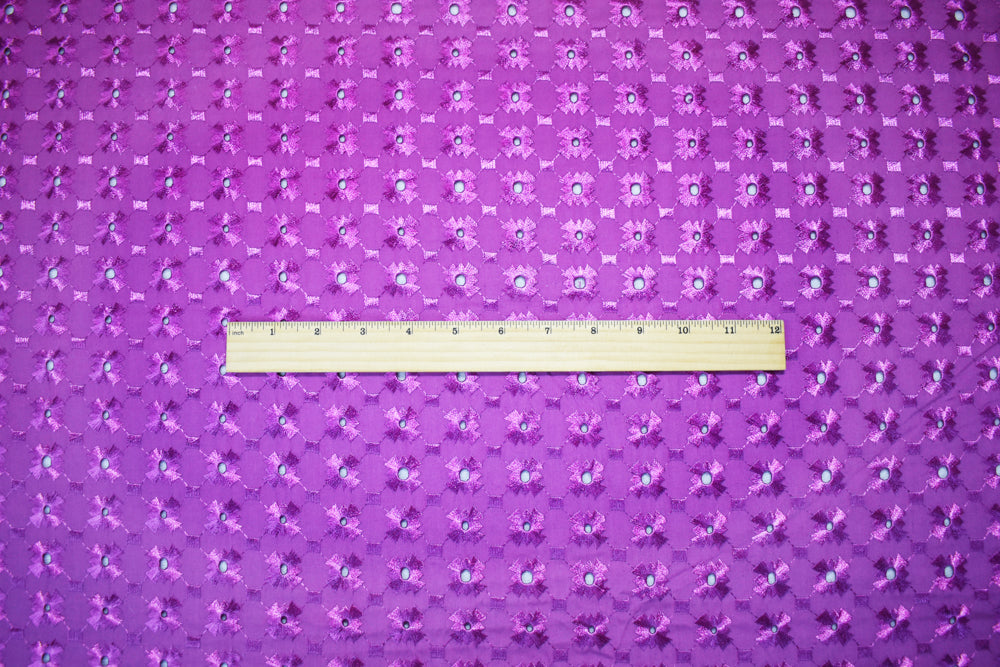 Purple Poly-Cotton Embroidered Geometric Pixel Scallop Woven Fabric