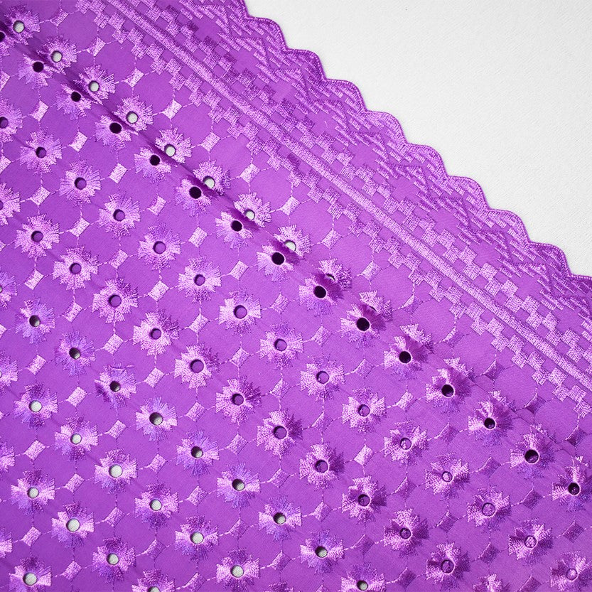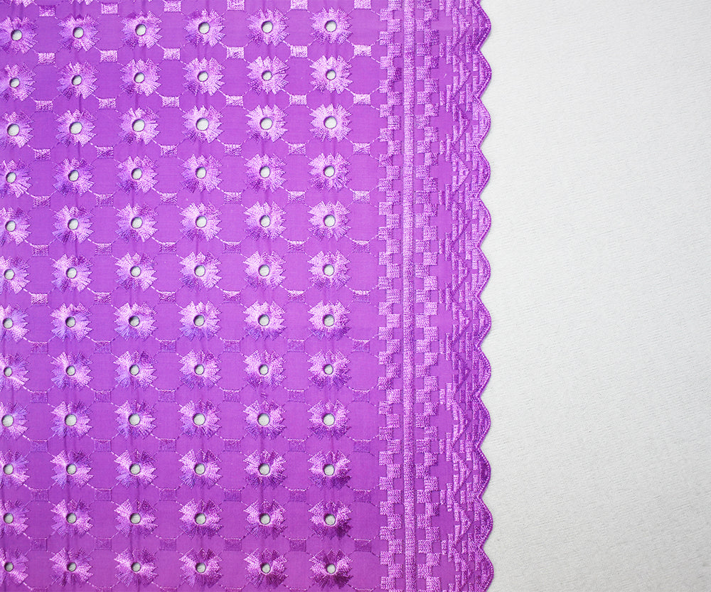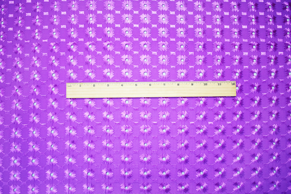 Purple Poly-Cotton Embroidered Geometric Pixel Scallop Woven Fabric