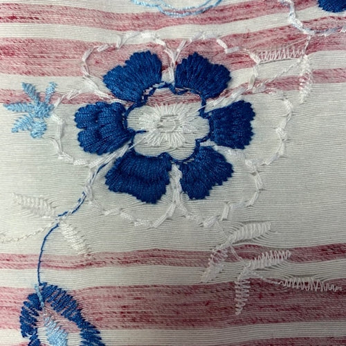 White/Brick Stripe Embroidered Floral Linen Look Fabric