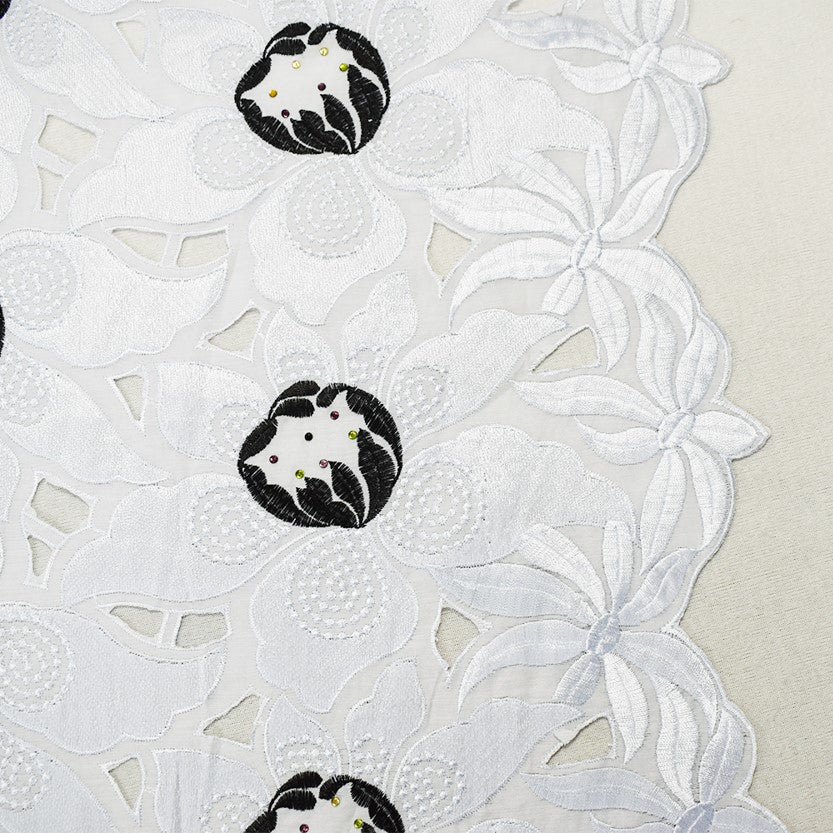 White-Multi Poly Embroidered Floral Scallop Rhinestone Woven Fabric