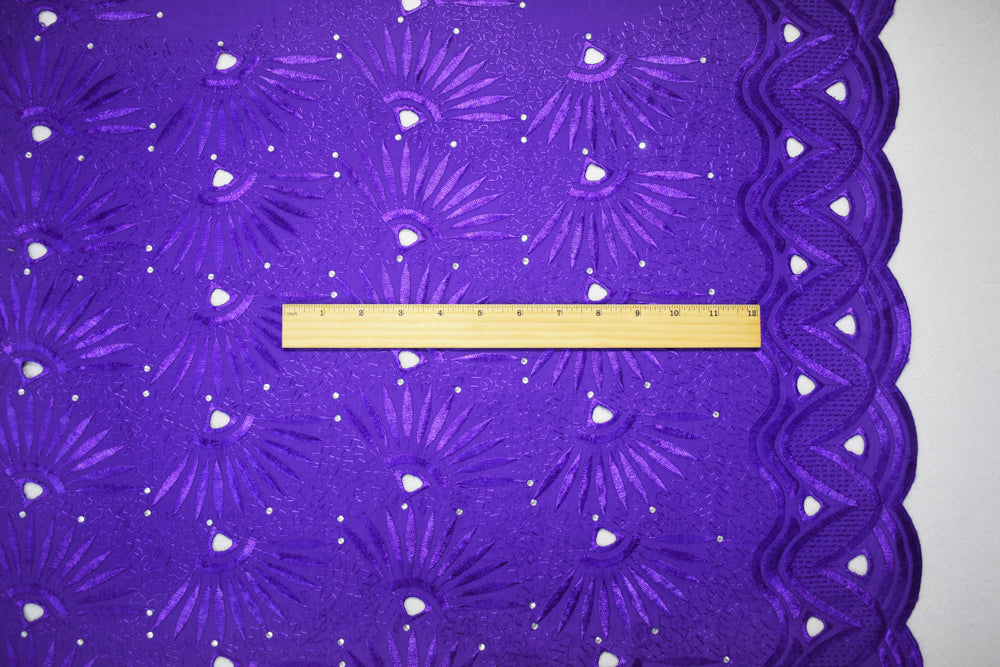 Purple Poly-Cotton Embroidered Abstract Scallop Rhinestone Woven Fabric