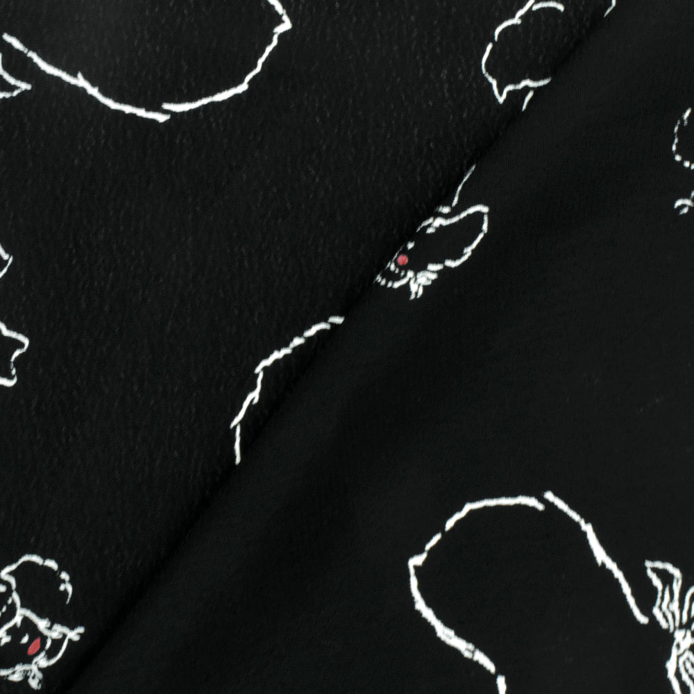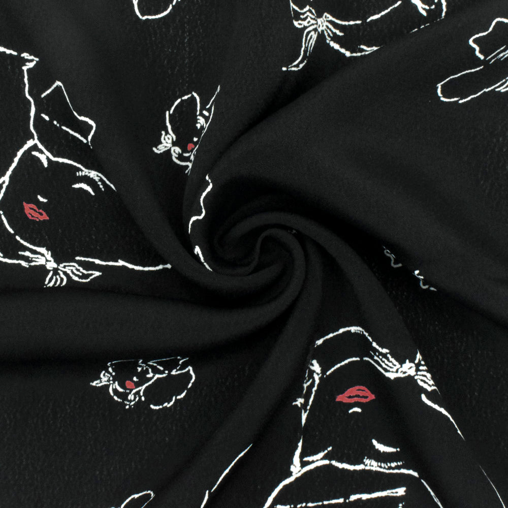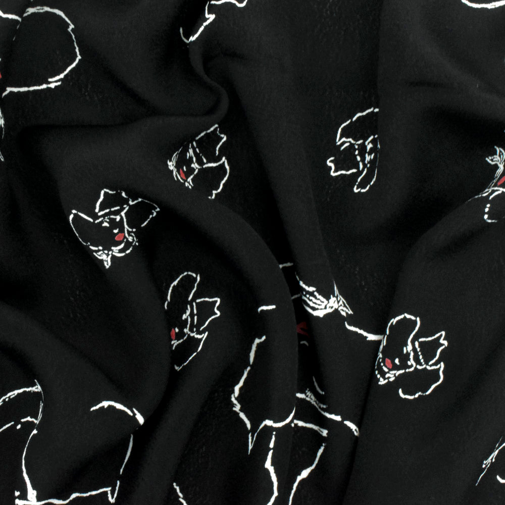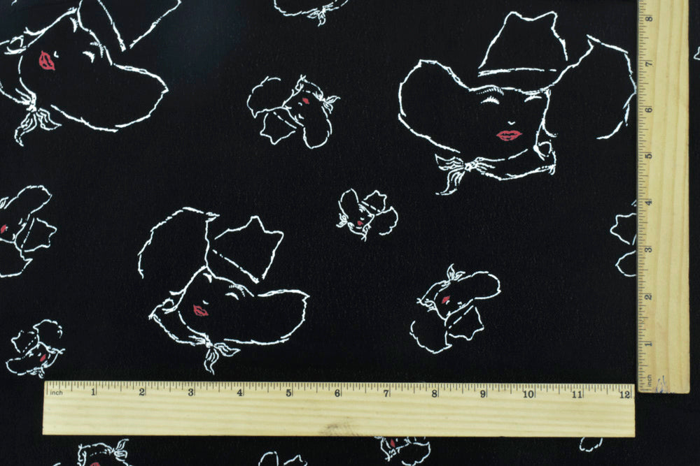 Basic Black-White-Red Cow Girl Printed Rayon Crepe Faille Woven Fabric