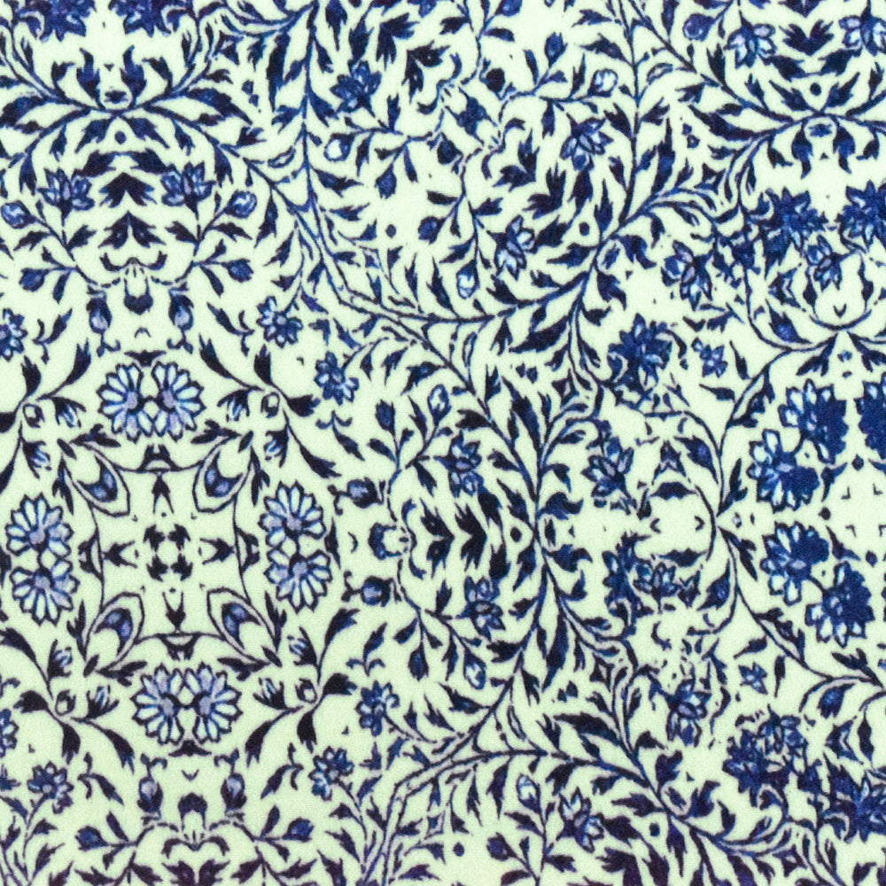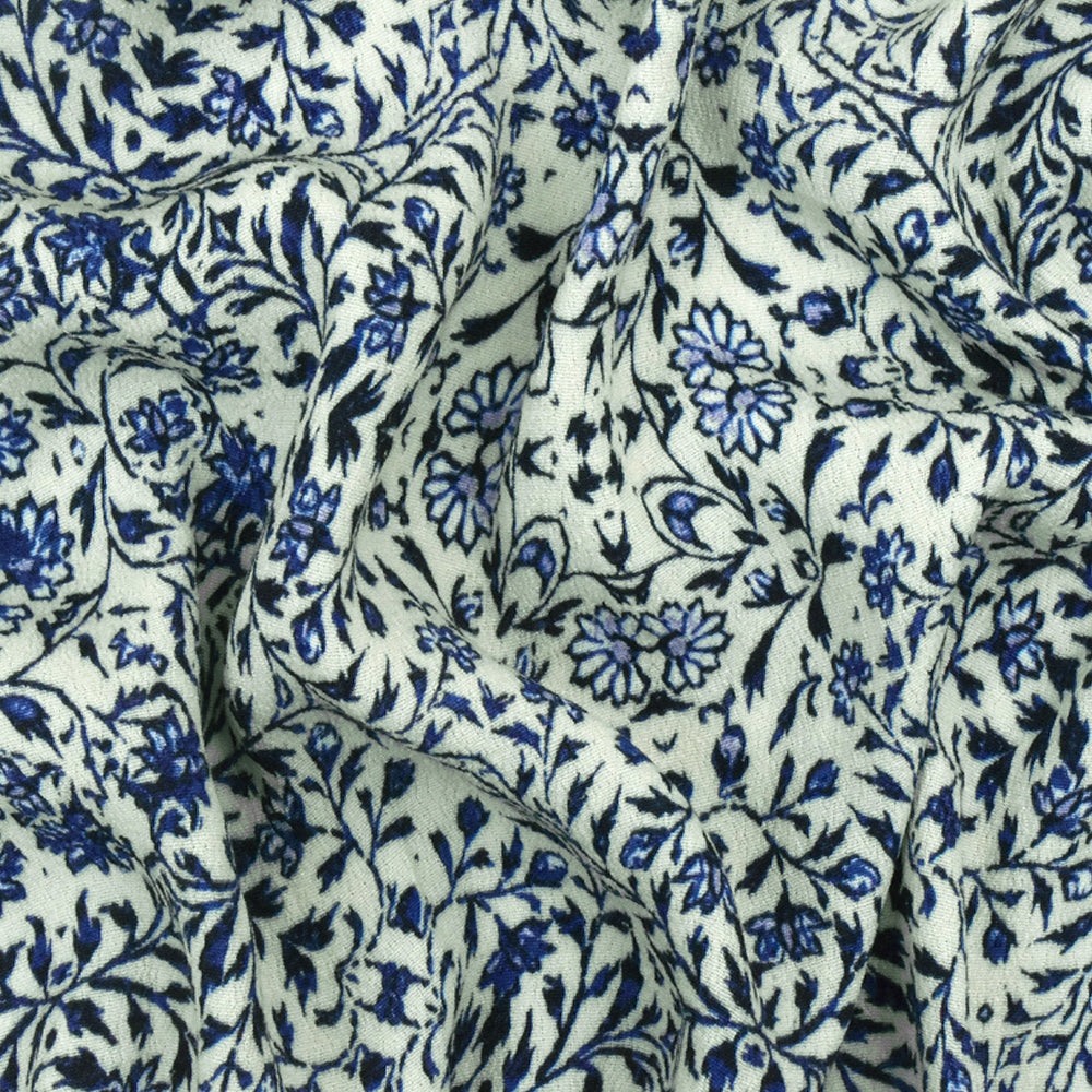 Blue-Beige Famous Designer Floral Trellis Printed Rayon Crepe Faille Fabric