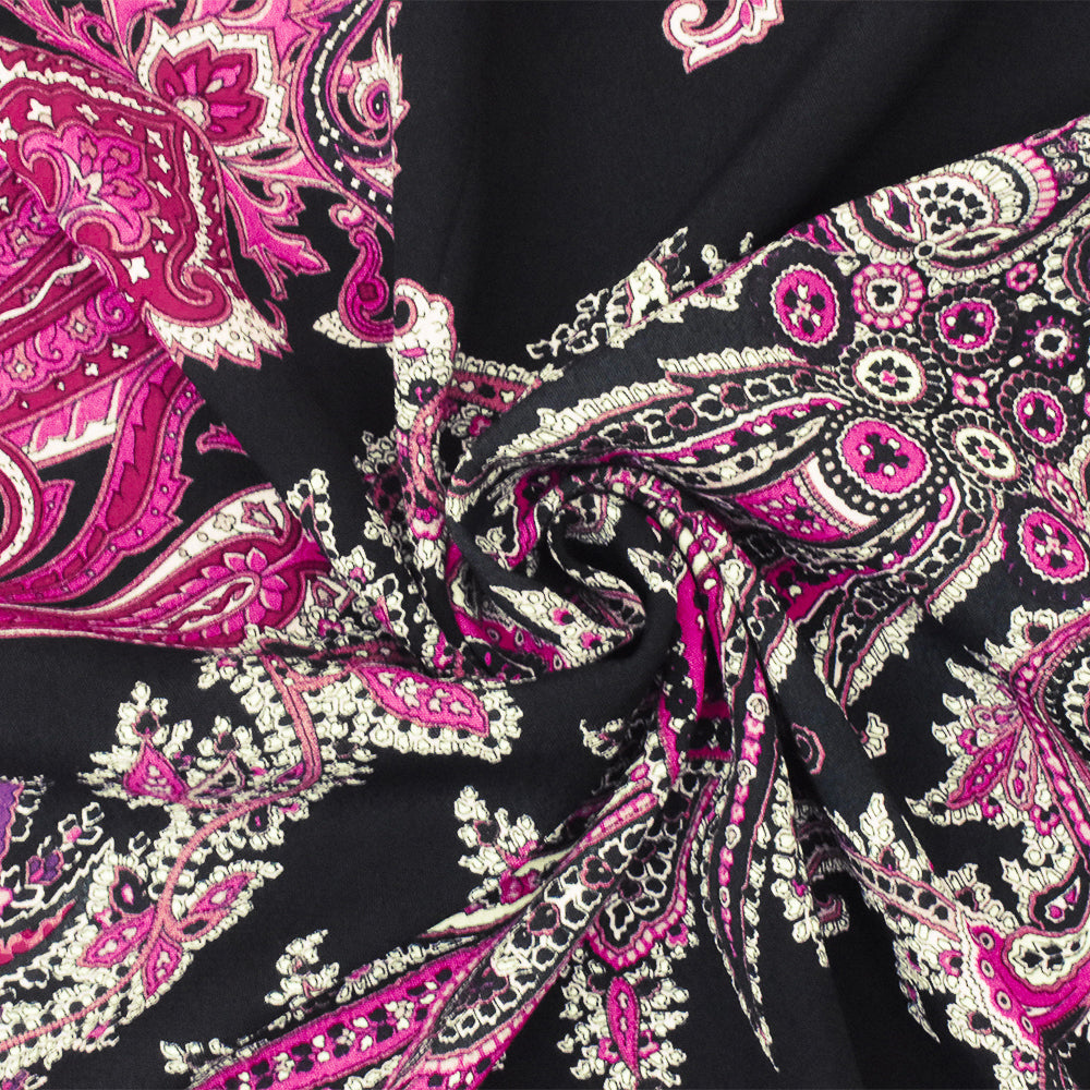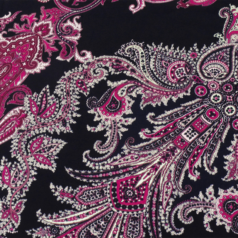 Fuchsia-Pink-Multi Famous Designer Viscose Paisley Printed Crepe Faille Fabric