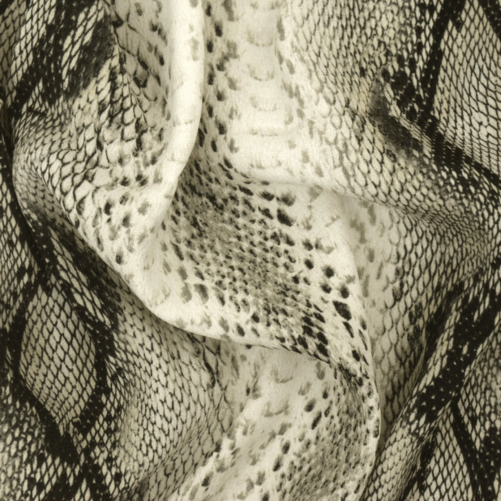 Ivory-Multi Famous Designer Snake Skin Printed Rayon Crepe Faille Fabric